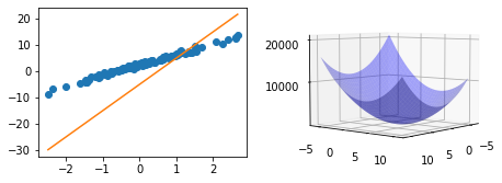 plt.rcParams["animation.html"] = "jshtml" - 왼쪽에는 \((x_i,y_i)\) and \((x_i,\hat{y}_i)\) 을 그리고 오른쪽에는 \(loss(w_0,w_1)\) 을 그릴것임