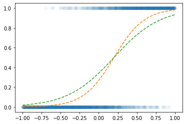 optimizr.zero_grad() plt.plot(x,y,'o',alpha=0.05)