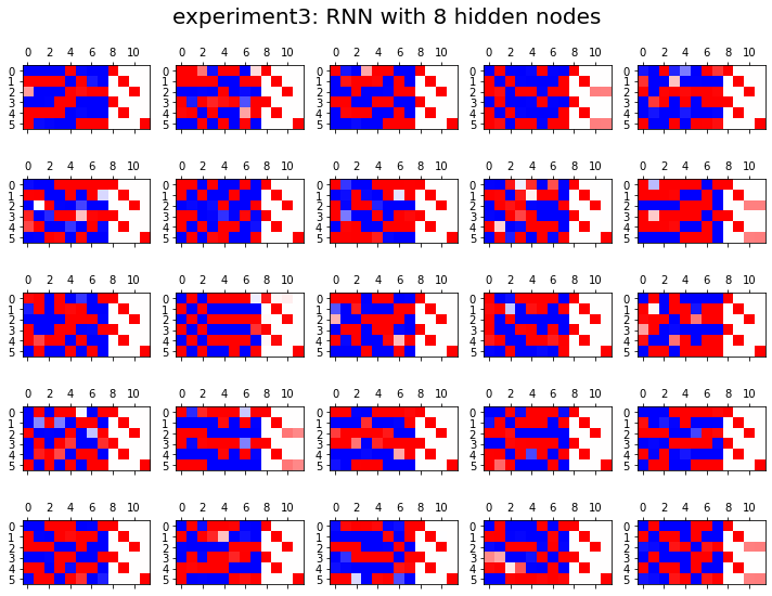 fig.suptitle("experiment3: RNN with {} hidden nodes".format(HIDDEN),size=20)