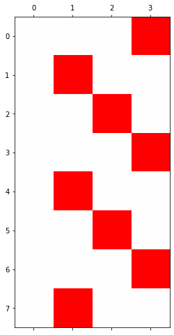 plt.matshow(soft(linr(hidden)).to("cpu").data,cmap='bwr',vmin=-1,vmax=1)<matplotlib.image.AxesImage at 0x7f6b9809ef50>