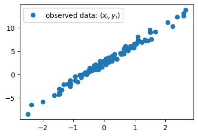 What.grad = None plt.plot(x,y,'o',label=r"observed: $(x_i,y_i)$")