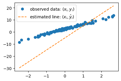 #plt.plot(x,2.5+4*x,'--',label=r"true: $(x_i, 4x_i+2.5)$ // $y=4x+2.5$ ")