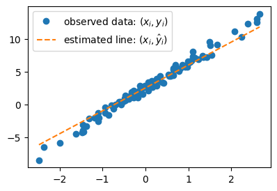 - 방법1: \(y_i= w_0+w_1 x_i +\epsilon_i = 2.5 + 4x_i +\epsilon_i, \quad i=1,2,\dots,n\)