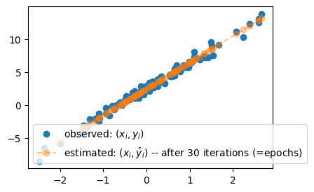 print(f"loss: {torch.sum((y - X@What)**2)}")loss: 55.074012756347656