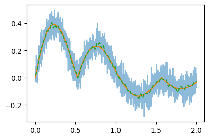 \[y_i = e^{-x_i} \times |\cos(5x_i)| \times \sin(5x) + \epsilon_i, \quad \epsilon_i \sim N(0,\sigma^2)\]
