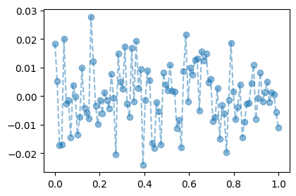 plt.plot(xx,yy,'--o',alpha=0.5,label="test")