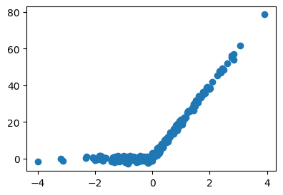 y = relu(20*x) + torch.randn(300)