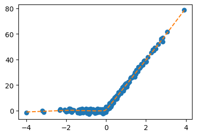ax[1].plot(x,net(x).data,'--',color="C1")