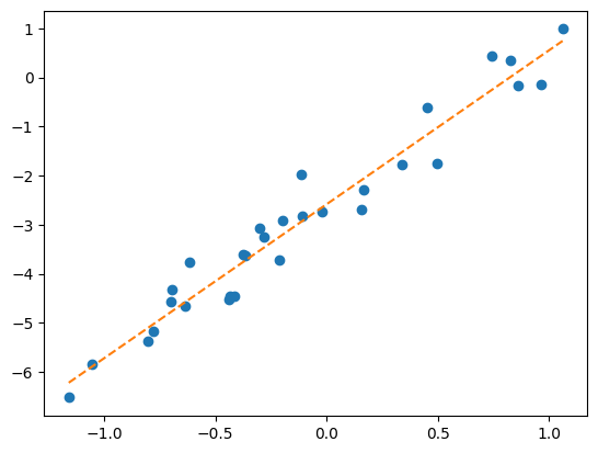 plt.plot(x,-2.5841 + 3.1360*x,'--')