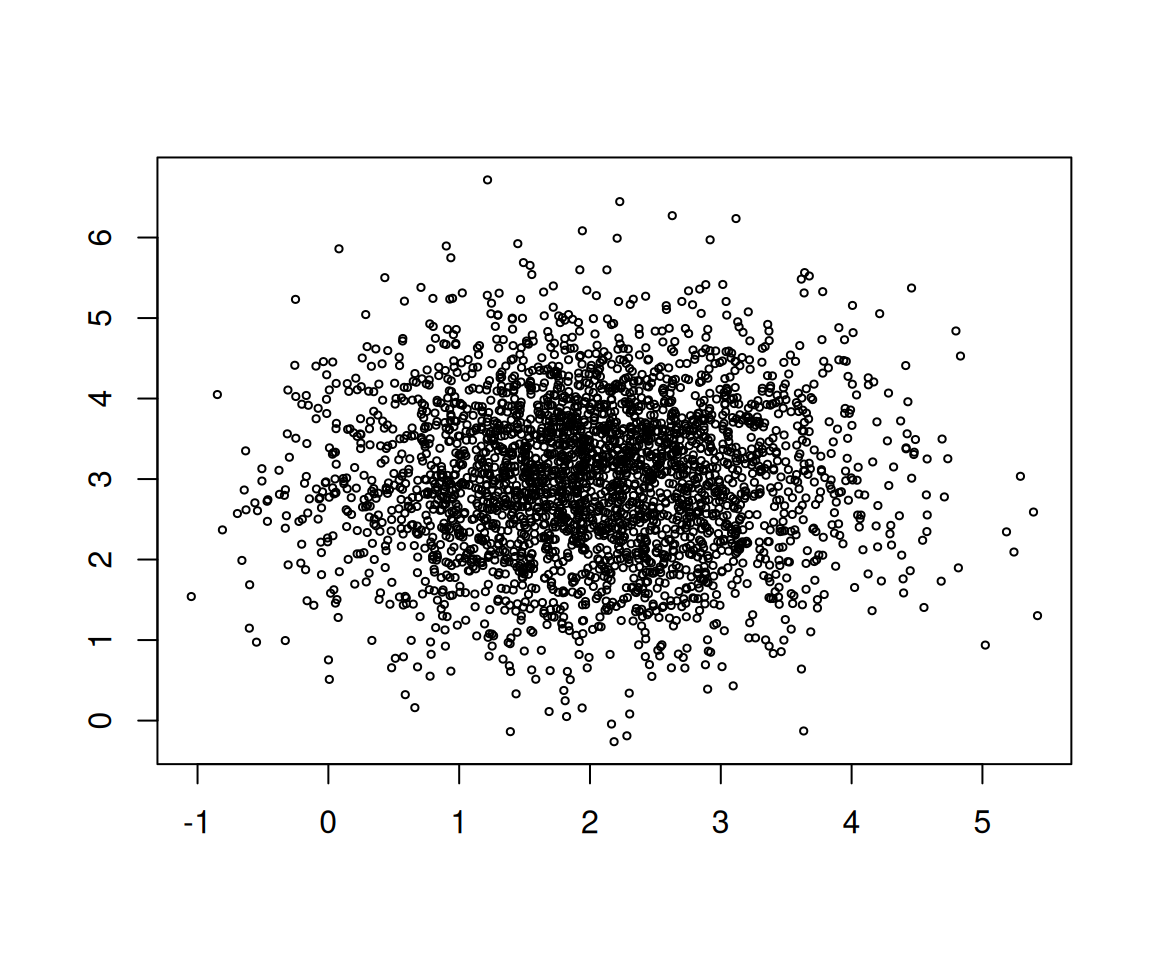 plot(x, y, cex=0.5, xlab="", ylab="")