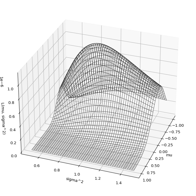 몇개의 \(\mu\)와 몇개의 \(\sigma^2\) 에 대한 가능도값을 구하면 아래와 같다.