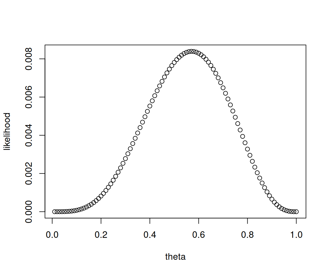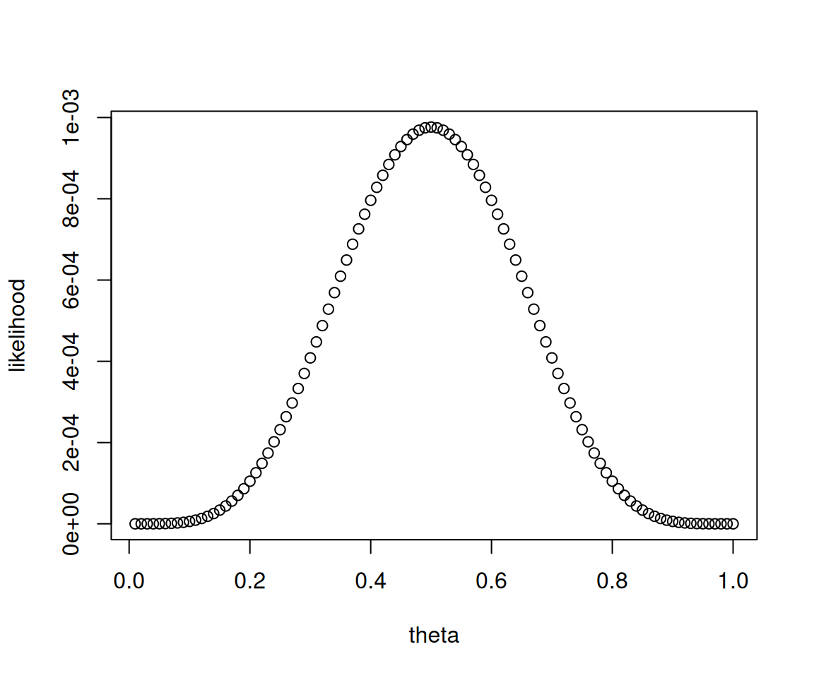 likelihood = (1-theta)^5 * theta^5