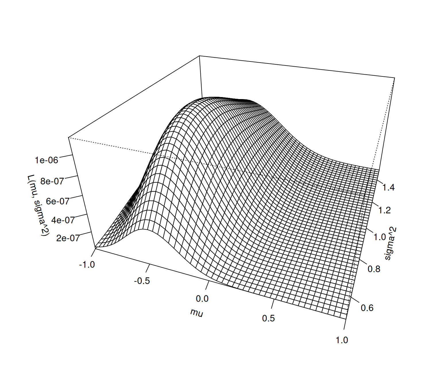 대략적으로 \(\sigma^2=0.9\) \(\mu=-0.5\) 근처에서 최대값을 가지는 듯 하다.