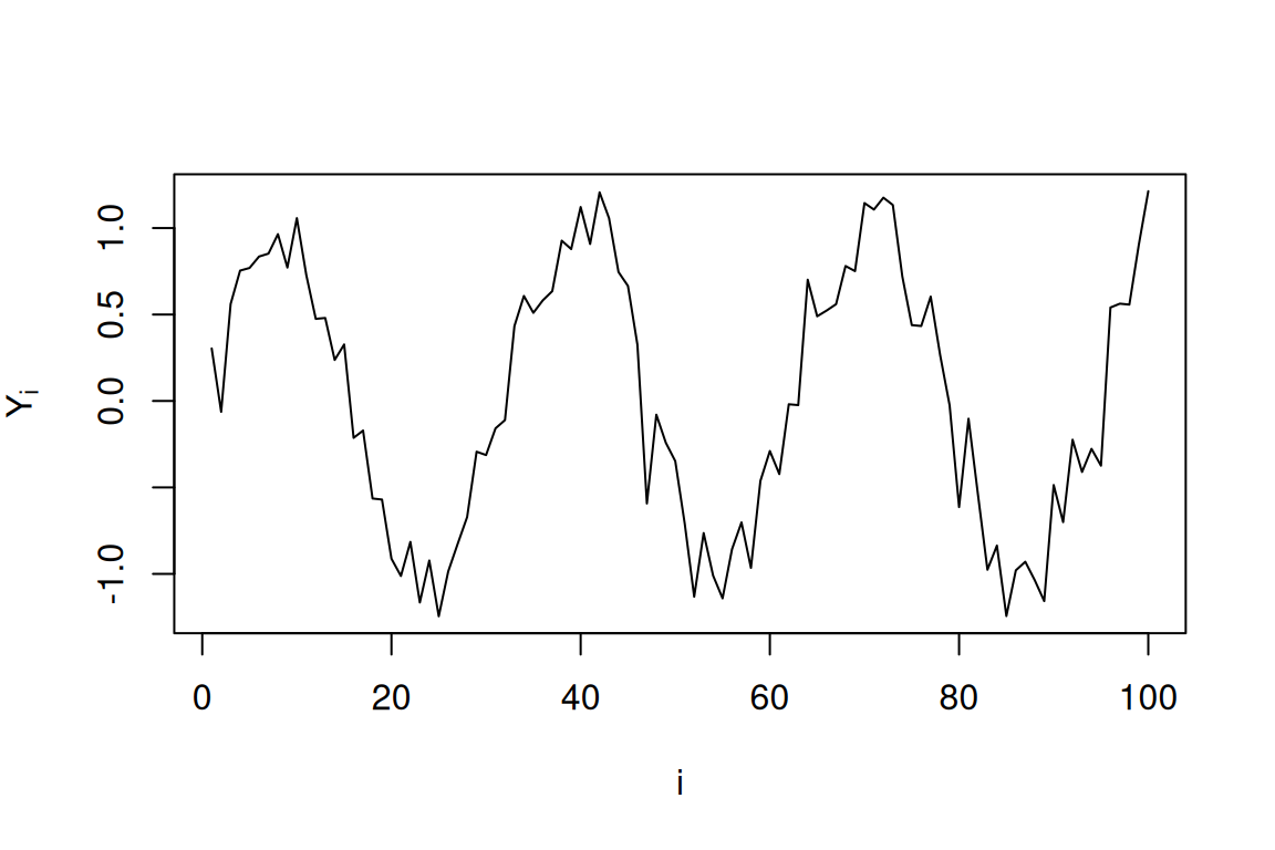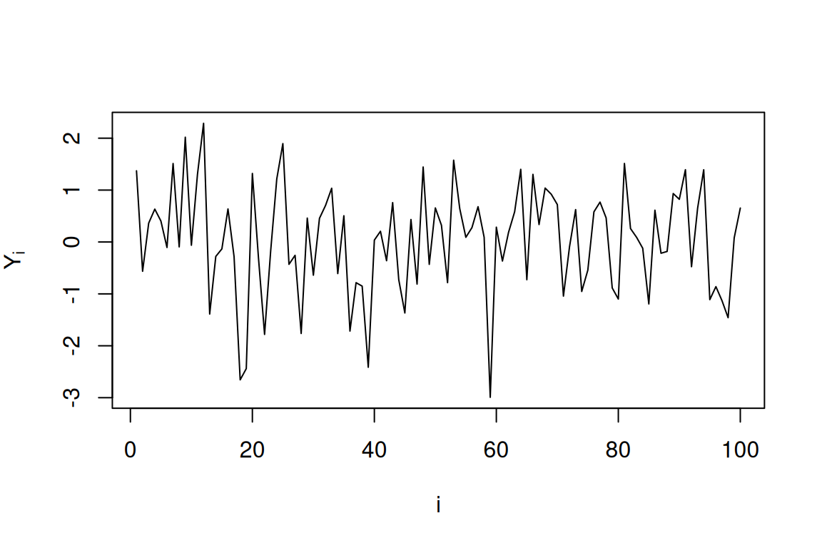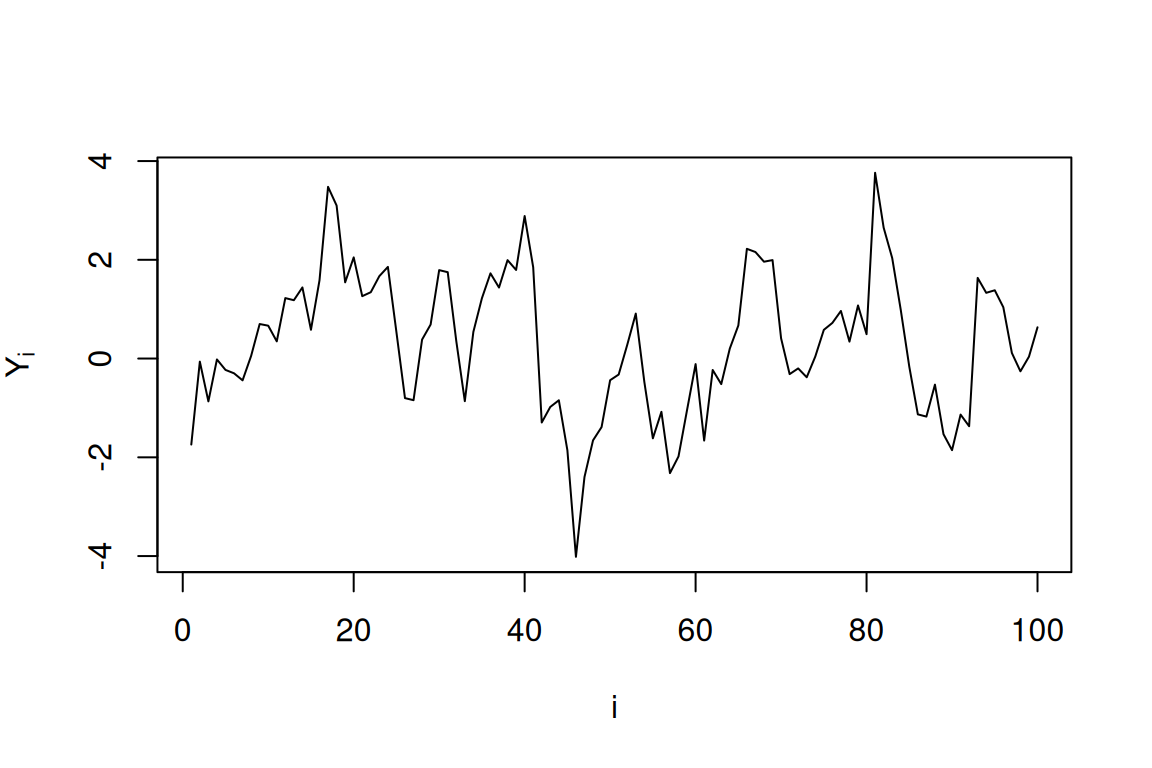 plot(1:100, y, type="l", xlab="i", ylab=expression(Y[i]), main="")