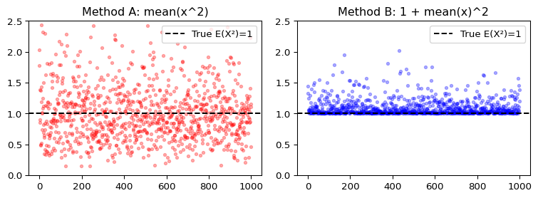 - A방식: \(\overline{x^2}\) (표본 제곱의 평균)