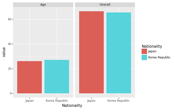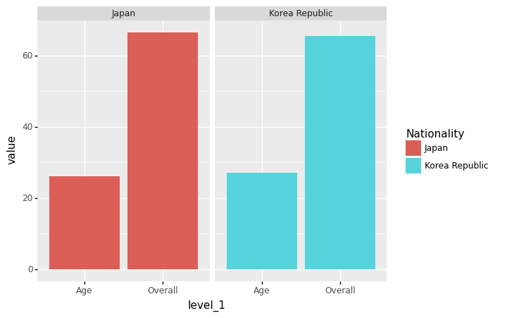- 예시1: 한국과 일본의 평균연령+평균능력치+최대능력치 비교 (면분할)
