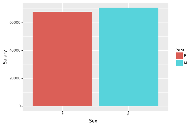 - 성별(Sex) 평균급여(Salary)를 구하고 아래의 지침에 따라 시각화 하라.