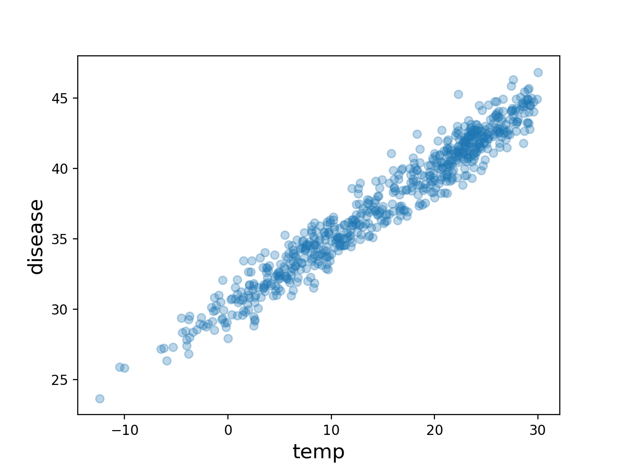 point = geom_point(aes(x='icecream',y='disease',color='temp_cut'),alpha=0.2)