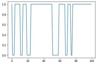 참고: \(X_t\)는 0 혹은 1의 값을 가질수 있는데, 이렇게 \(X_t\)가 가질 수 있는 값들을 모은 공간을 상태공간이라고 하고 기호로는 \(V=\{0,1\}\)와 같이 표현한다.