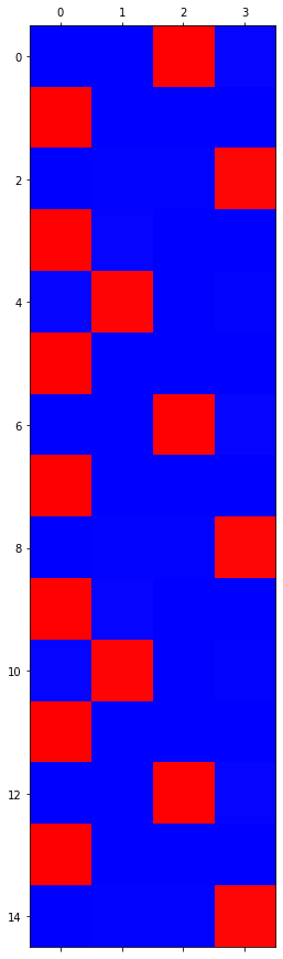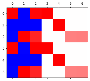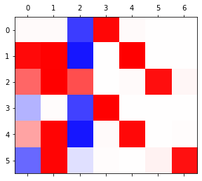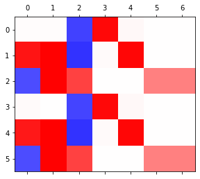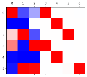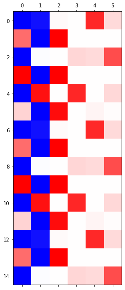 ax[i][j].matshow(combind.to("cpu").data[-6:],cmap='bwr',vmin=-1,vmax=1)