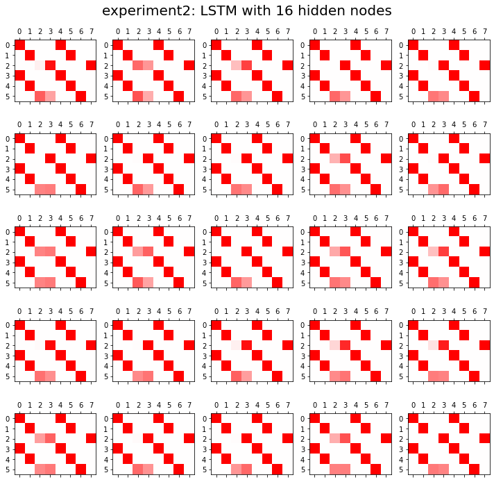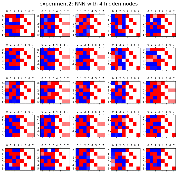fig.suptitle("experiment2: RNN with {} hidden nodes".format(HIDDEN),size=20)