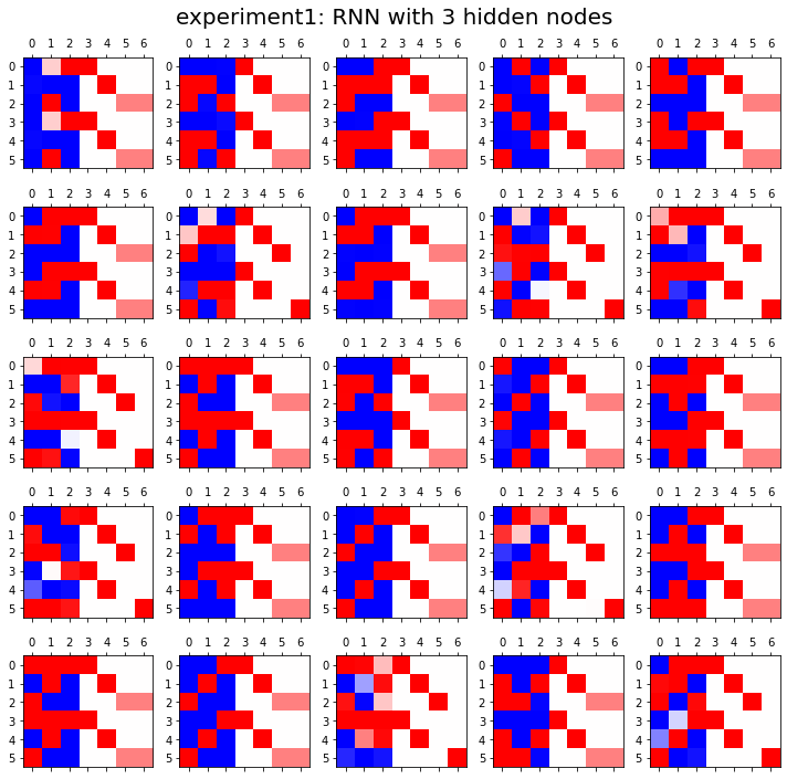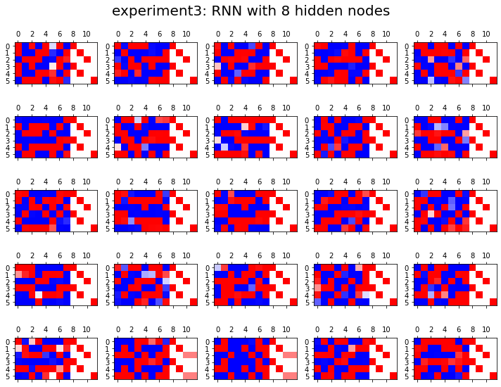 fig.suptitle("experiment3: RNN with {} hidden nodes".format(HIDDEN),size=20)